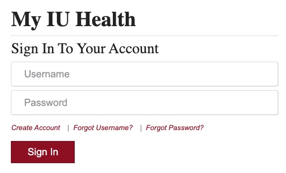 To log in to the My IU Health Portal, complete these steps:
